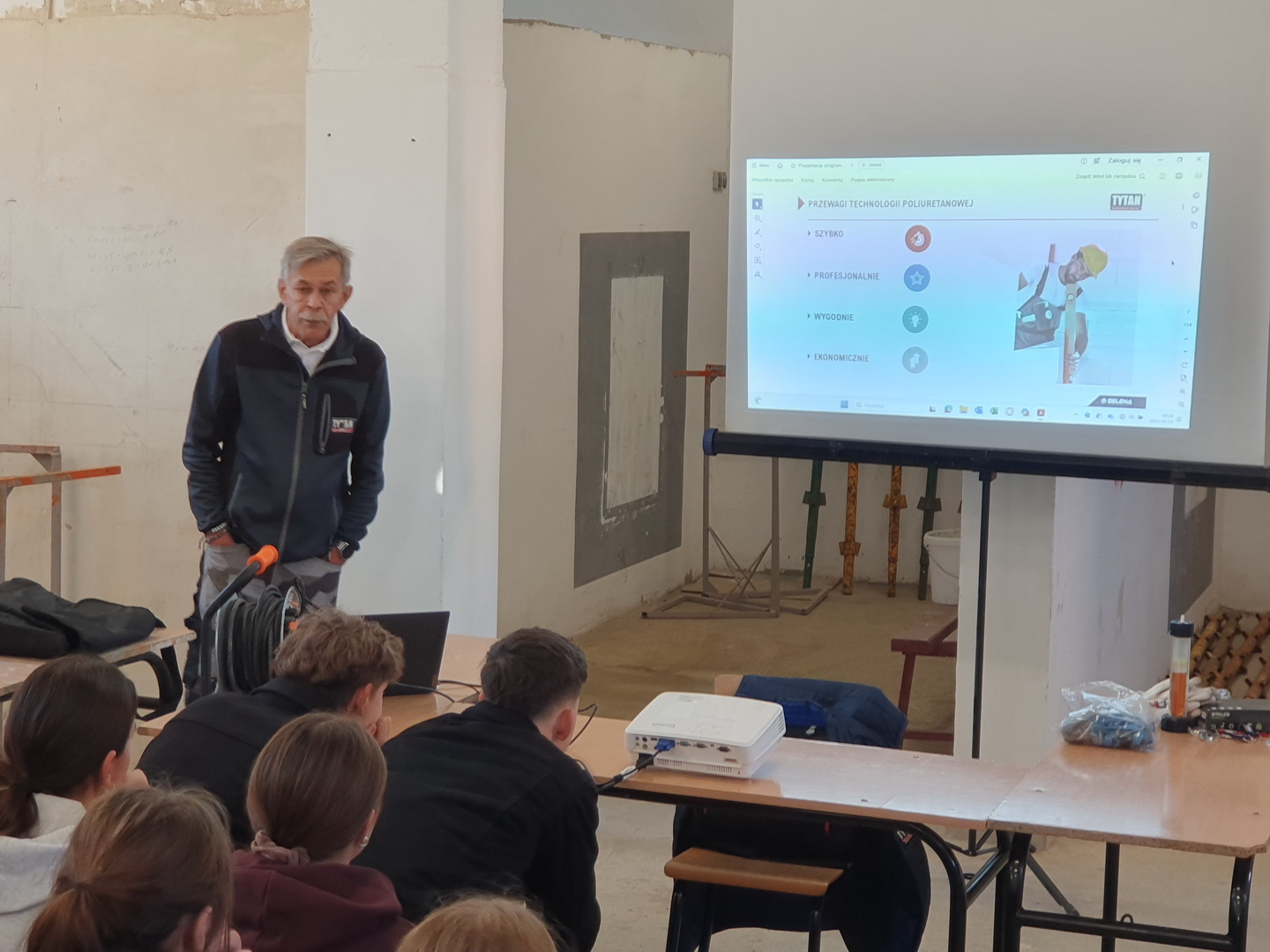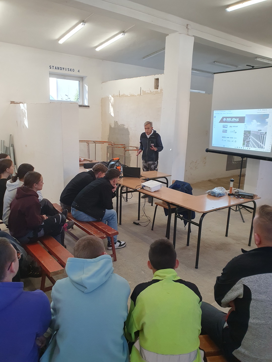 W imieniu Zespołu Szkół Budowlanych pragniemy podziękować firmie SELENA FM S.A., a szczególne wyrazy uznania kierujemy do Pana Tomasza Krzysztofika za organizację i przeprowadzenie w dn. 23.10.2025 praktycznego szkolenia branżowego w zakresie wykorzystania narzędzi i materiałów firmy SELENA FM S.A. jako globalnego lidera i dystrybutora chemii budowlanej dla uczniów Naszej szkoły. Na Warsztatach Szkolnych młodzież uzyskała wiedzę teoretyczną i praktyczną na temat technologii wykonywania prac budowlanych.