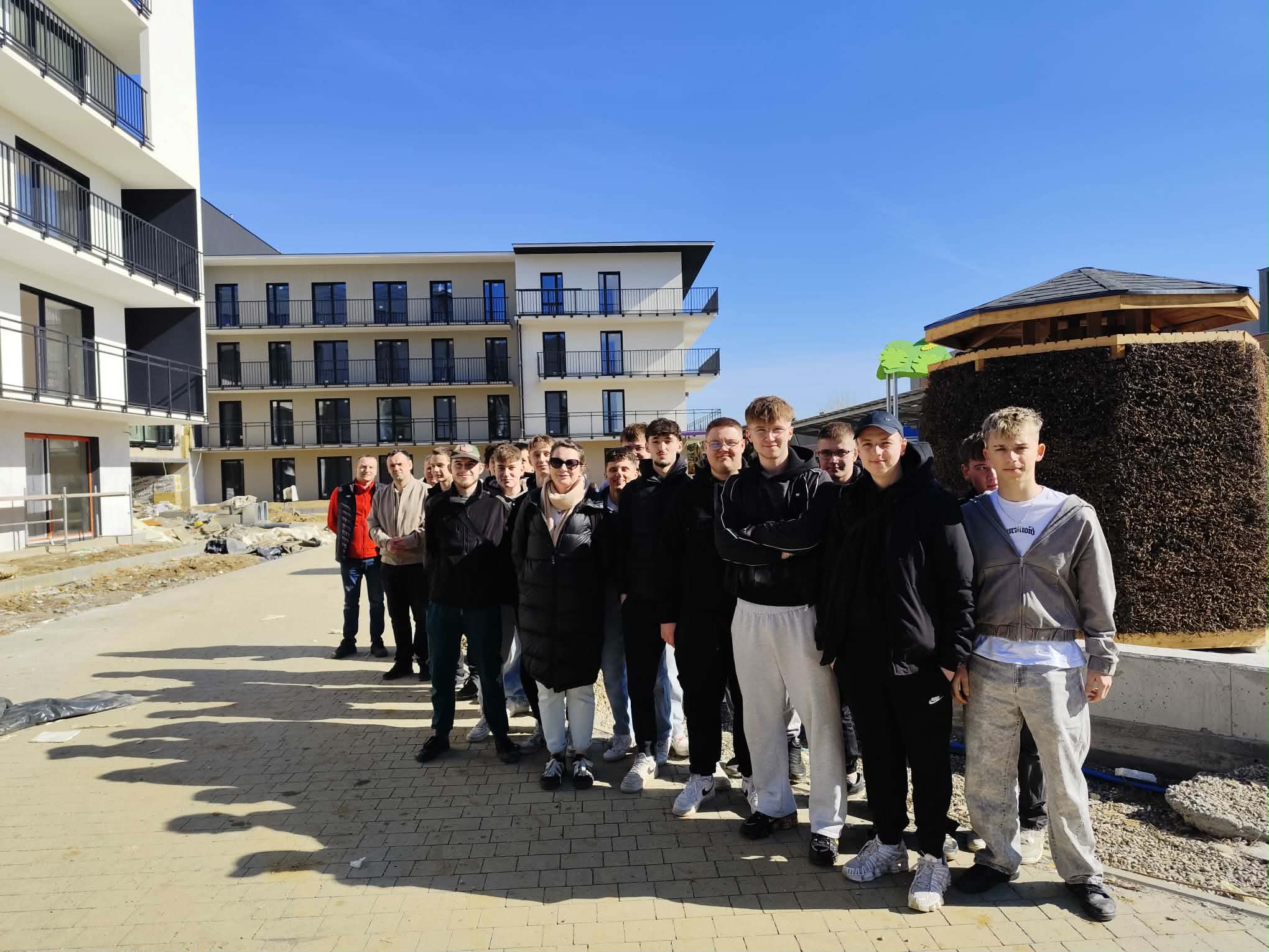 Uczniowie naszej szkoły uczestniczyli w wyjściu zawodoznawczym, którego celem było zapoznanie się z nowoczesnymi rozwiązaniami stosowanymi w budownictwie mieszkaniowym na osiedlu realizowanym przez Sądeckie Towarzystwo Budownictwa Społecznego w Nowy Sącz. Inwestycja ta stanowi przykład innowacyjnego podejścia do projektowania budownictwa mieszkaniowego. Zastosowane tam rozwiązanie jest jedynym tego typu w Polsce.