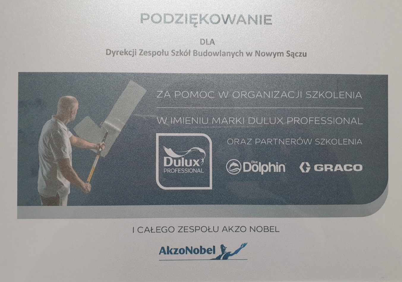 Firmy BlueDolphin, Dulux Professional, GRACO w dn. 29.01.2026 przeprowadziły na Warsztatach Szkolnych Zespołu Szkół Budowlanych szkolenie teoretyczno-praktyczne z zakresu „Jak stosować innowacyjne produkty w profesjonalnej pracy” z zastosowaniem swoich firmowych narzędzi i materiałów.